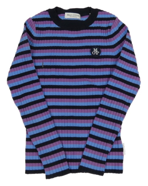 Fialovo-modro-tmavomodrý pruhovaný žebrovaný svetr