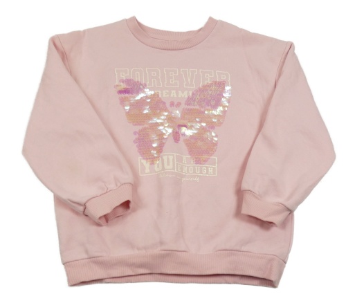 Světlerůžová mikina s motýlkem z pajetek a nápisy Nutmeg