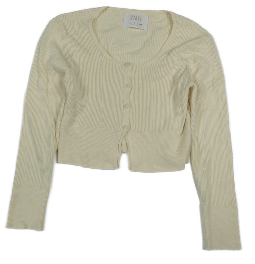 Smetanový žebrovaný propínací crop svetr ZARA