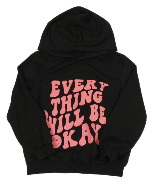 Černo-růžová mikina s nápisem a kapucí