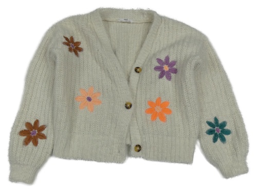 Smetanový chlupatý propínací oversize svetr s výšivkami květin M&S