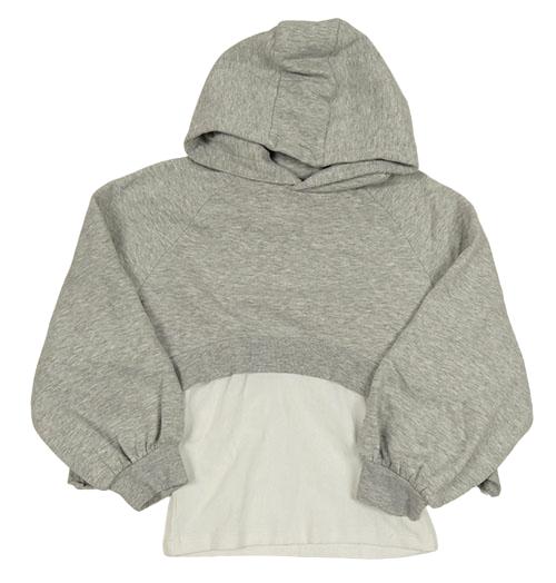 Šedá melírovaná crop mikina s všitým žebrovaným topem a kapucí Next