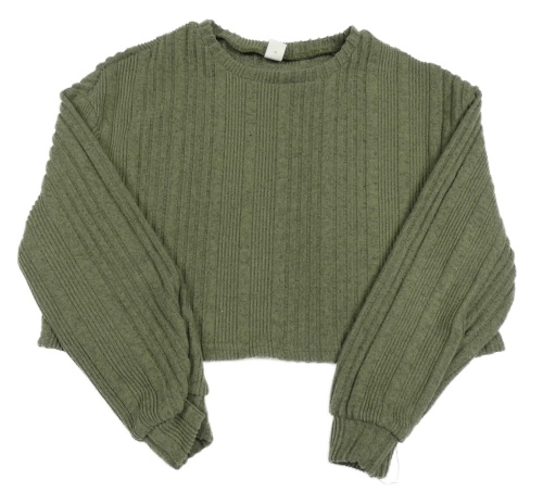 Khaki žebrovaný úpletový crop svetr Shein