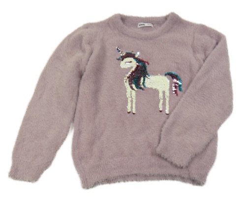 Fialovorůžový chlupatý župan s jednorožcem z flitrů Sinsay