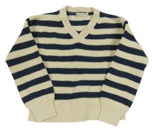 Smetanovo-tmavomodrý pruhovaný svetr C&A