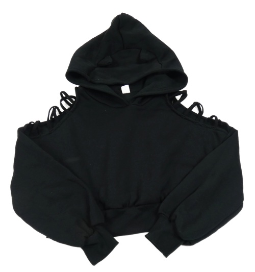 Černá crop mikina s volnými rameny a kapucí Shein