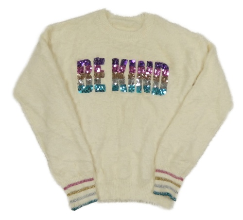 Smetanový chlupatý svetr s nápisem z flitrů Dunnes