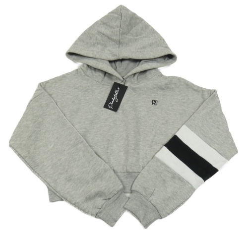 Nové - Šedá melírovaná crop mikina s proužky a kapucí Pindydoll