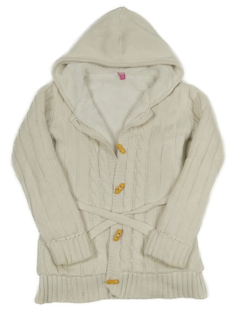 Bílý vzorovaný propínací zateplený setr s páskem a kapucí