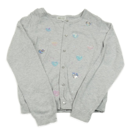 Šedý propínací lehký svetr se srdíčky z flitrů H&M