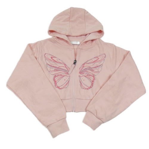Světlerůžová propínací crop mikina s motýlem a kapucí Primark