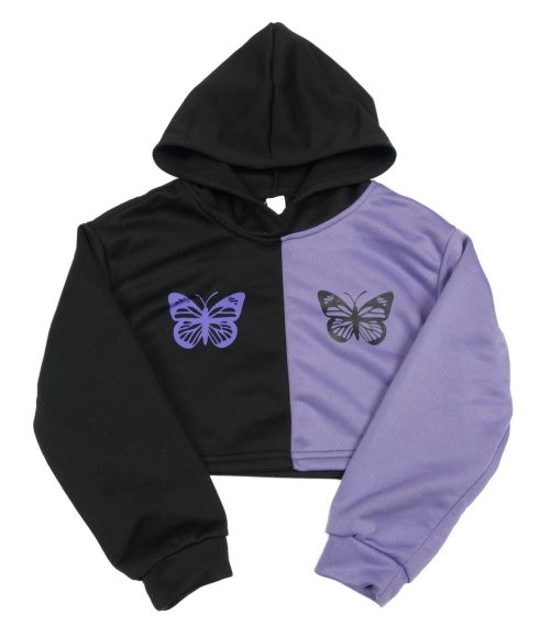 Černo-levandulová crop mikina s motýly a kapucí Next