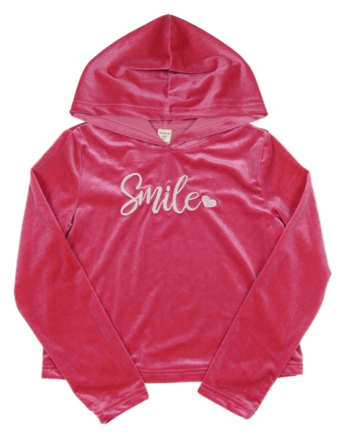 Fuchsiová sametová crop mikina s nápisem a kapucí Shein