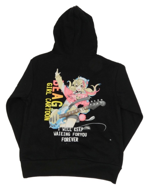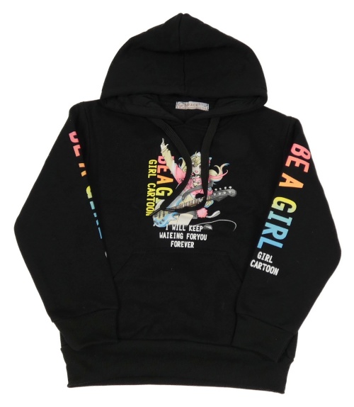 Černá mikina s dívkou a nápisy a kapsou a kapucí GRACE