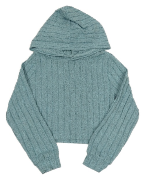 Světlemodrá žebrovaná úpletová crop mikina s kapucí Shein