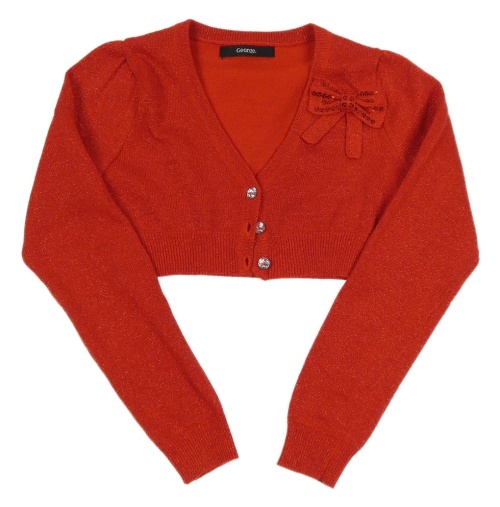 Červené třpytivé svetrové propínací bolerko s mašlí s flitry George