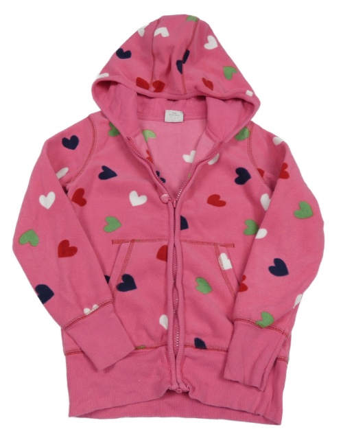 Tmavorůžová fleecová propínací mikina s barevnými srdíčky a kapucí Next