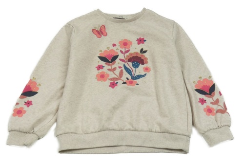 Béžová melírovaná mikina s květinami a motýlem C&A