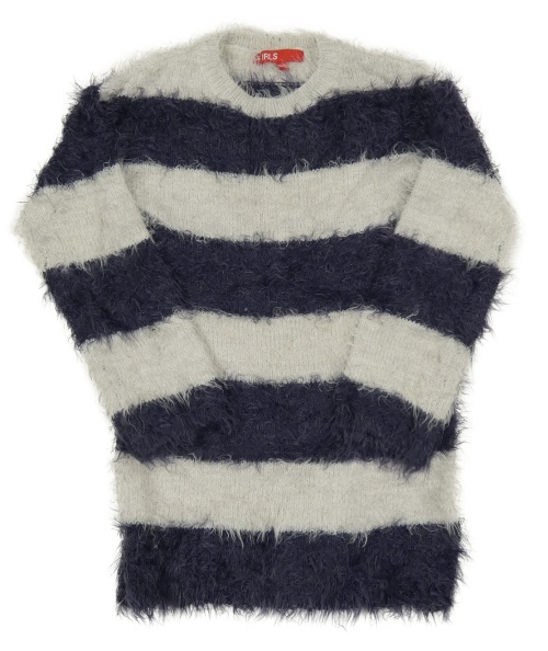 Tmavomodro-bílý pruhovaný chlupatý dlouhý svetr GIRLS