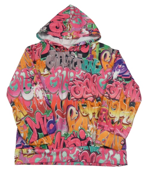 Barevná mikina s nápisy a kapucí