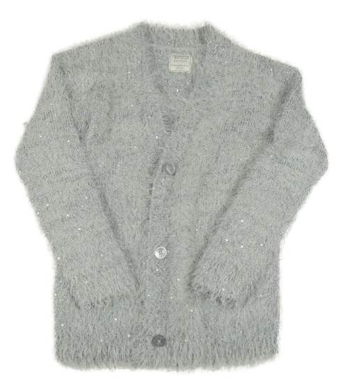 Světlešedý chlupatý třpytivý propínací svetr Terranova