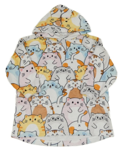 Bílá chlupatá oversize mikina s kočkami a kapucí