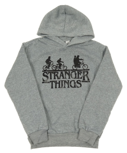 Šedá melírovaná mikina s potiskem a kapucí - Stranger Things