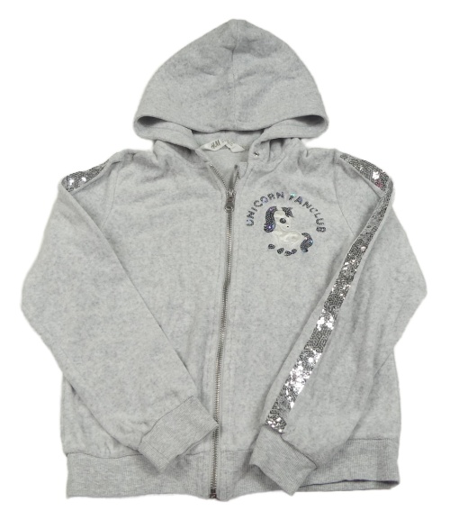 Světlešedá melírovaná sametová propinací mikina s jednorožcem s flitry a kapucí H&M