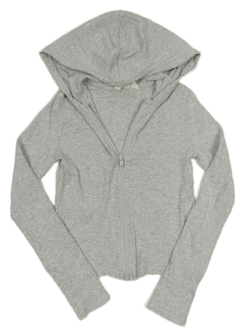 Šedá žebrovaná propínací crop mikina s kapucí H&M