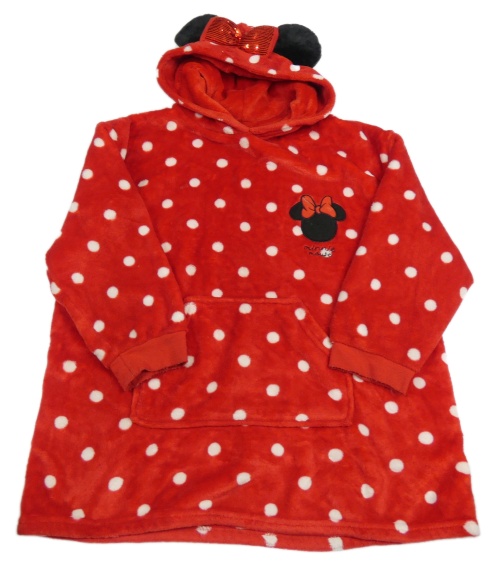 Červená puntíkatá chlupatá oversize mikina s Minnie a kapucí Disney vel.128-146