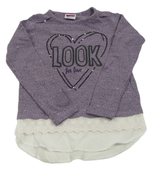 Fialový lehký svetr s nápisem z flitrů a krajkou Yigga