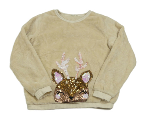 Smetanová plyšová mikina se sobem z flitrů H&M