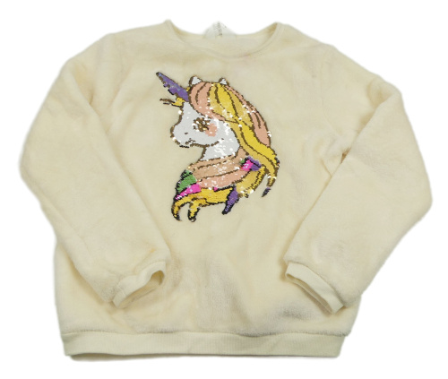 Smetanová chlupatá mikina s jednorožcem z flitrů H&M