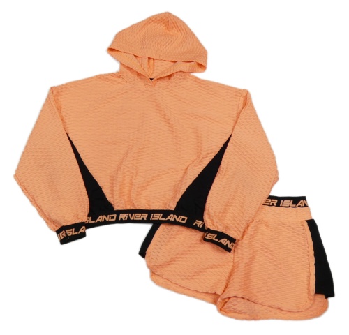 2set - Oranžová vzorovaná sportovní crop mikina s kapucí + kraťasy River Island