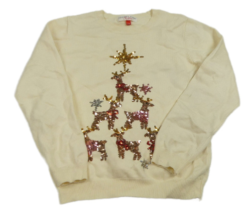 Smetanový lehký svetr se soby z flitrů