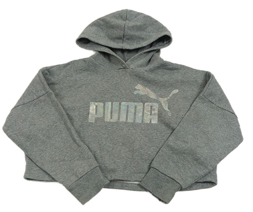 Šedá melírovaná oversize crop mikina s logem a kapucí PUMA