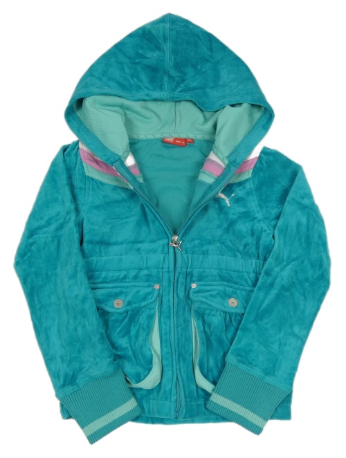 Tyrkysová sametová propínací mikina s logem a kapucí Puma