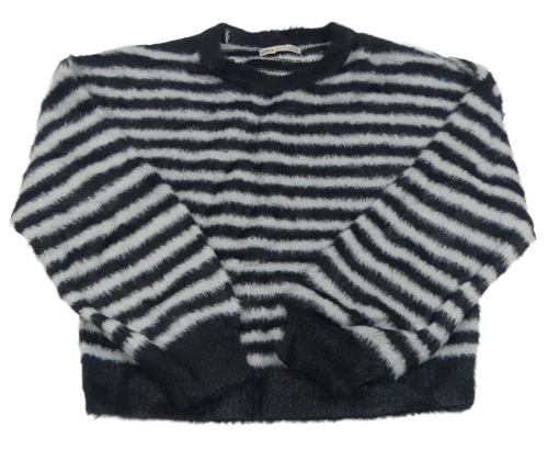Černo-šedý pruhovaný chlupatý svetr Only