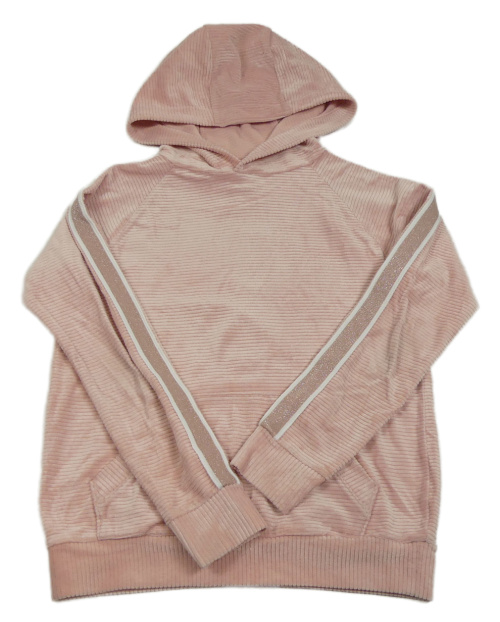 Světlerůžová sametová žebrovaná mikina s proužkem a kapucí F&F