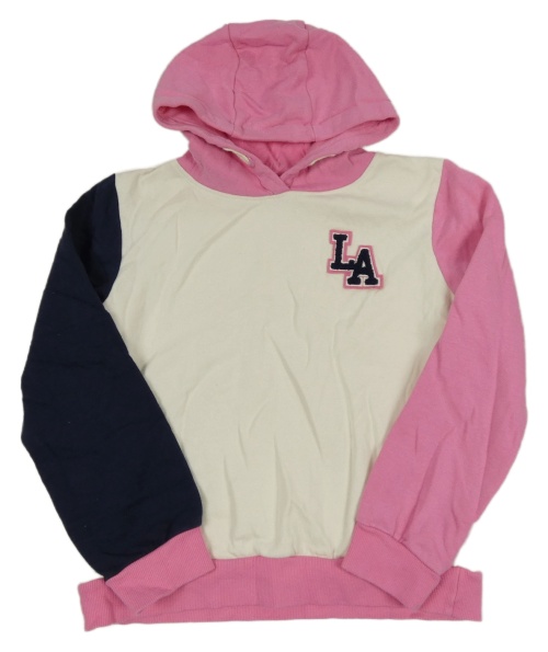 Smetanovo-tmavomodro-růžová mikina s písmenky a kapucí YIGGA