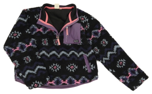 Černá vzorovaná huňatá mikina s kapsou SALTROCK