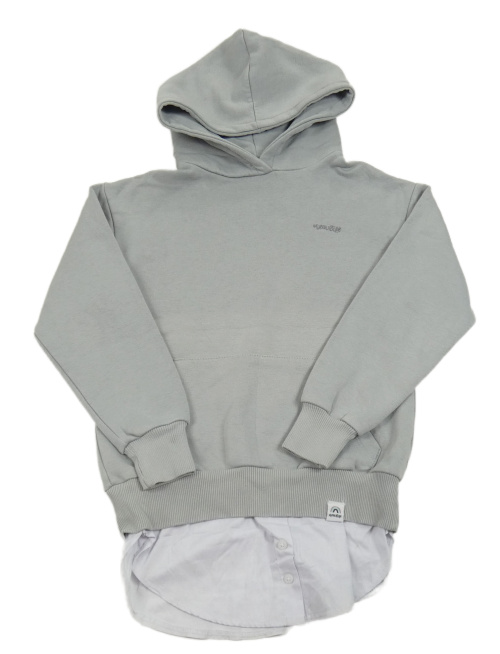 Šedá mikina s halenkovou vsadkou a kapucí New Life
