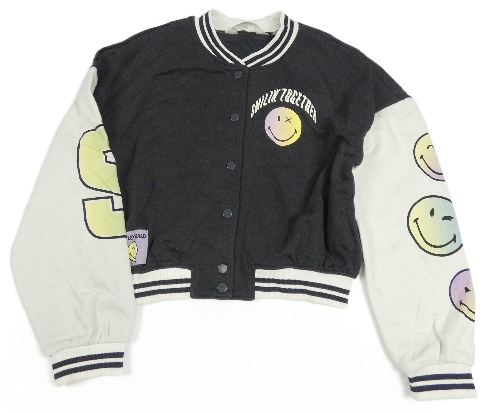 Černošedo-bílá baseballová oversize crop mikina se smajlíkem a číslem a pruhy H&M