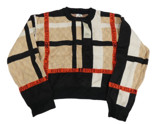 Nové - Béžovo-černo-červený kostkovaný crop svetr s logy River Island