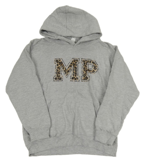 Šedá melírovaná mikina s písmenky a kapsou a kapucí