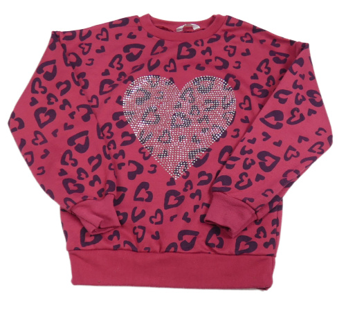 Růžovo-fialová mikina s leopardím vzorem a srdcem z flitrů M&Co.