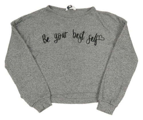 Šedá žebrovaná úpletová crop mikina s nápisem E-Vie
