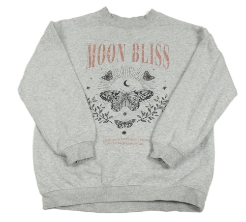 Světlešedá melírovaná mikina s můrou a nápisy H&M
