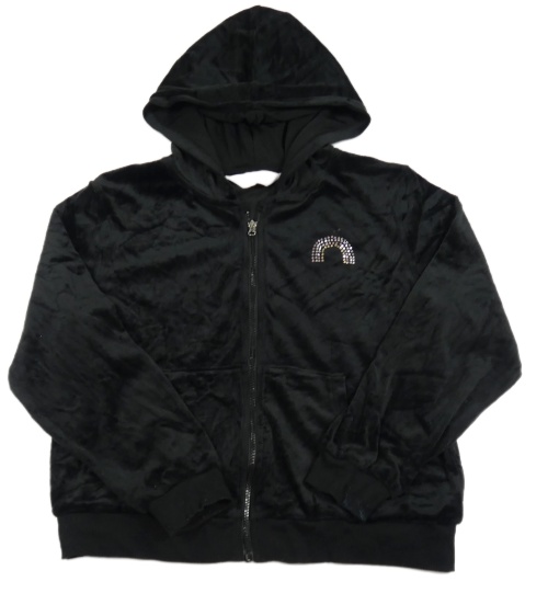 Černá sametová propínací mikina s duhou z kamínků a kapucí H&M