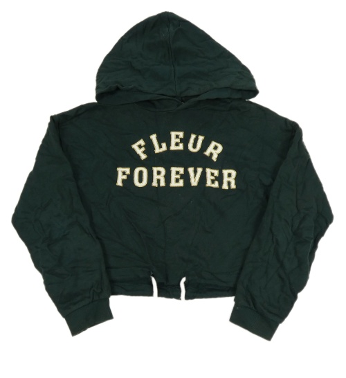 Tmavozelená crop mikina s nápisem a kapucí H&M